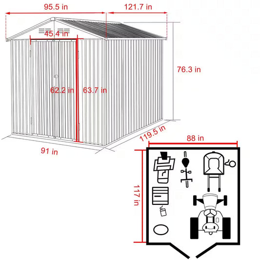 7 Ft. X 4 Ft. Metal Outdoor Backyard Garden Utility Storage Tool Shed Kit with Spacious Layout and Durable Construction