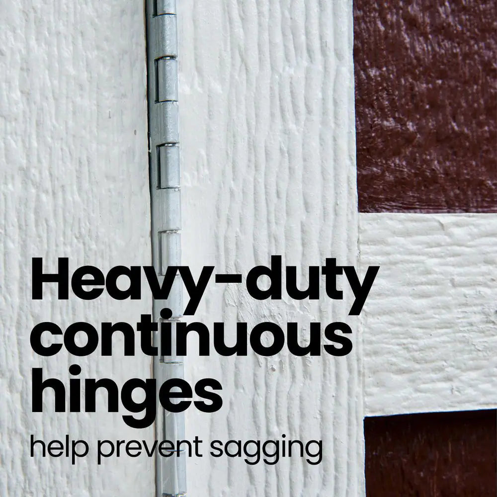 - Continuous hinges on pre-assembled doors distribute door weight evenly and prevent sagging
