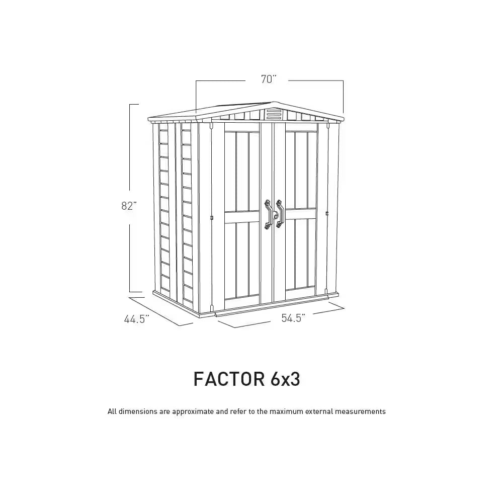 Factor 6 Ft. W X 3 Ft. D Outdoor Durable Resin Plastic Storage Shed with Double Doors, Taupe and Brown (22.9 Sq. Ft.)