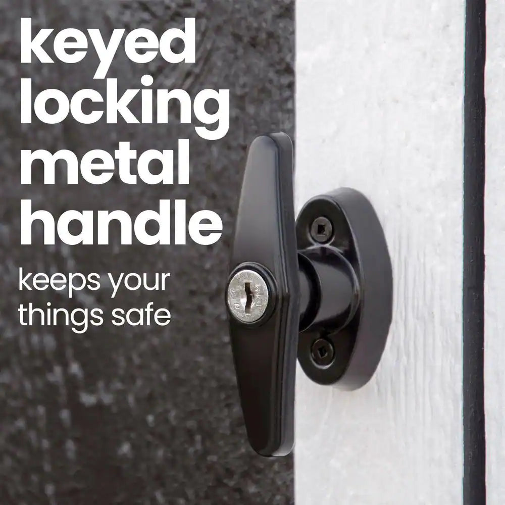 - Fasteners, latches, hinges, OSB flooring, locking door handle and instructions included