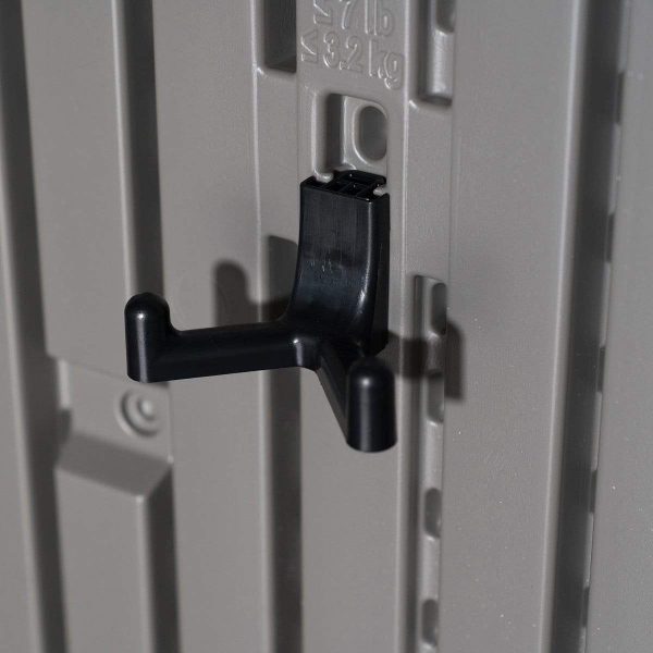 This Lifetime rough-cut outdoor storage shed has a stain-resistant exterior that resists fading in the sun and maintains its color without needing to be painted. The included floor doesn’t crack or peel over time, and the textured nonslip surface resists oil and stains so it can be used for a variety of activities.