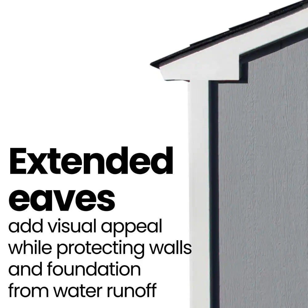 - 6 ft. high side walls with 8 ft. high peak creates lots of storage space, all wood is pre-cut and ready to assemble