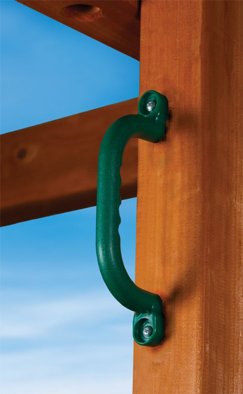 The excitement never ends with this Gorilla Playsets Savannah II Swing Set. Children will love zipping down the Extreme Tube II and Alpine Wave slides, as well as scaling back up via the rope ladder and rock climbing wall. A tower connected to a clatter bridge promotes imaginative play, while the belt swings and trapeze swing offer aerial fun. The swing set’s cedar construction features solid 4” x 4” support beams and a 4” x 6” swing beam finished in a beautiful amber stain.